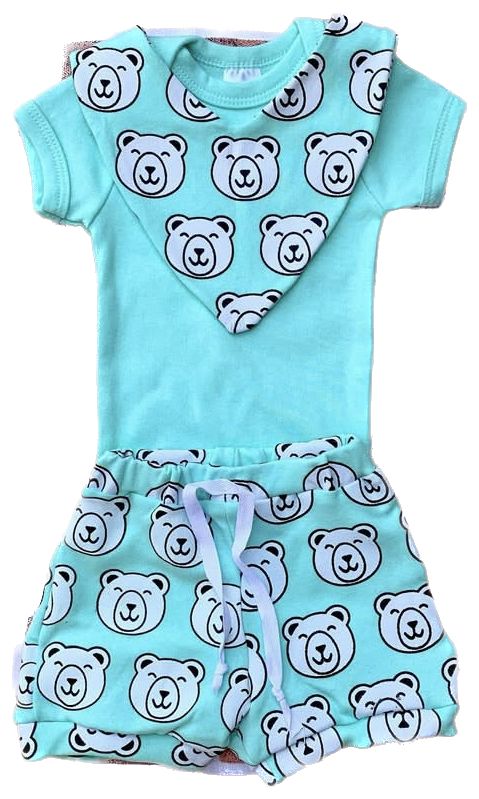 Conjunto Body, Shorts e babador.
