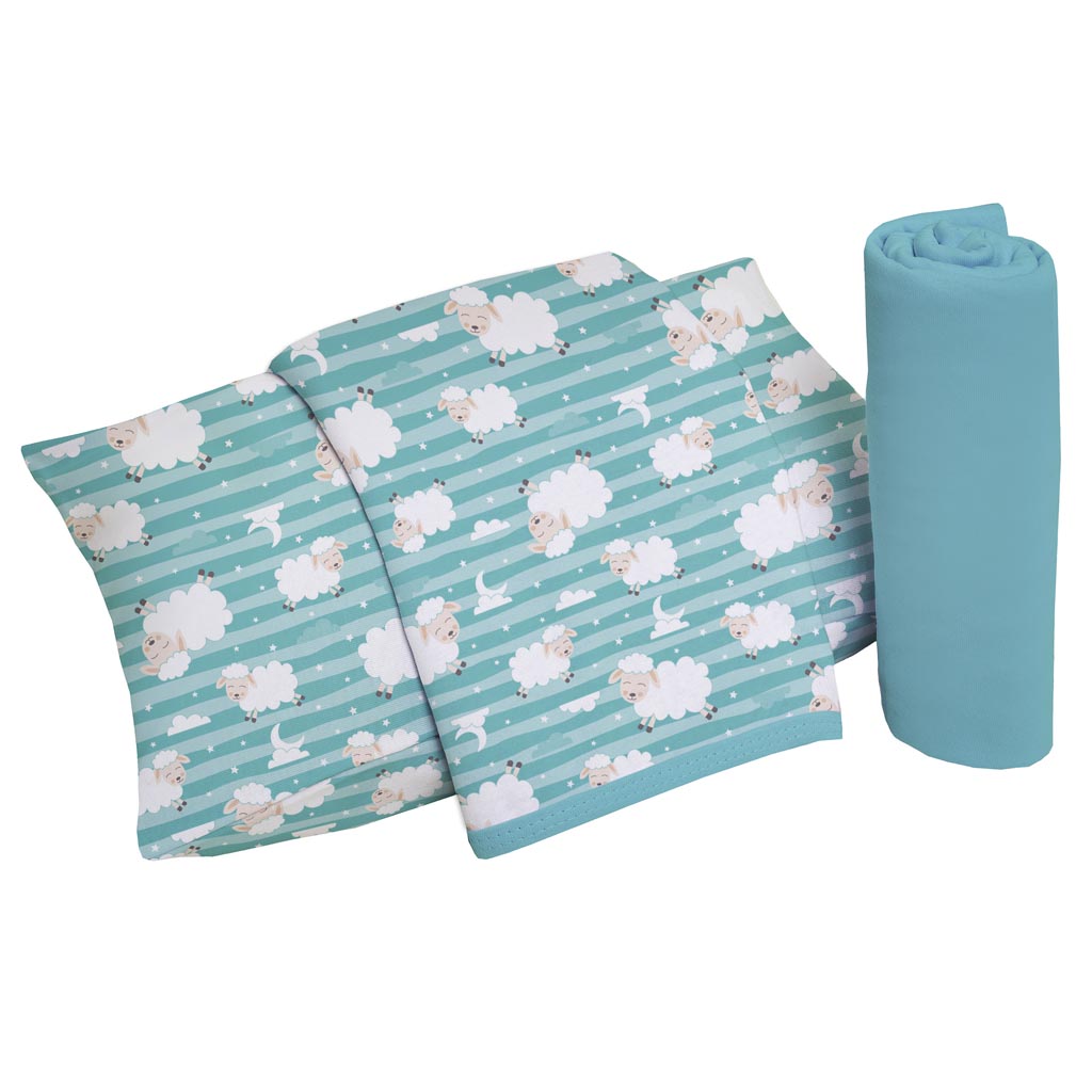 Jogo de Cama Berço 3pçs Malha 100% Algodão - Ovelha